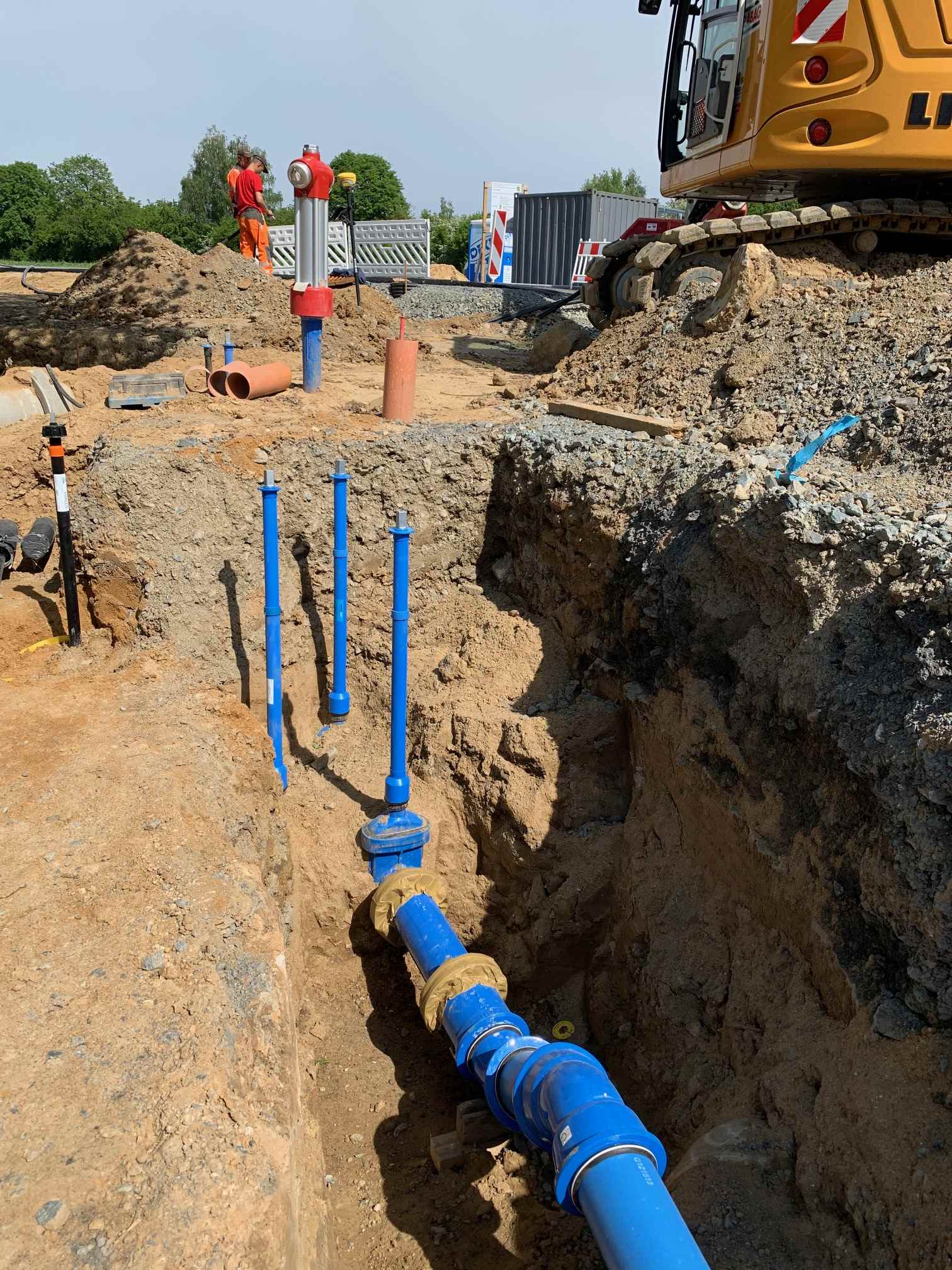 Die Tiefbauarbeiten wurden von der Firma TRB in Pirna GmbH ausgeführt, die Montage- und Verlegearbeiten von den Mitarbeitern des TZV.
