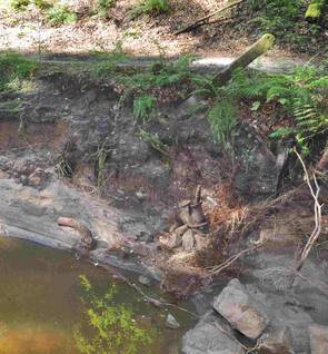 Davon betroffen ist auch die Versorgungsleitung für das Trinkwasser. Diese ist an der Gewässerkreuzung stark unterspült und die Entleerung für diese Leitung ist freigelegt wurden. Ein querliegender Ast hat wahrscheinlich schlimmeres verhindert, die Leitung hielt den Wassermassen stand. Um die Versorgung auch im Winter zu gewährleisten (Frostsicherheit), muss dieses Stück ausgewechselt werden.