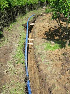 Nachdem die Verlegung im unbefestigten Bereich abgeschlossen war, musste nun die Straße gesperrt und eine Umleitung über die Steinbruchstraße und den Verbindungsweg zum Teichweg in Kauf genommen werden. Mitte August 2013 konnte die Baumaßnahme beendet werden.