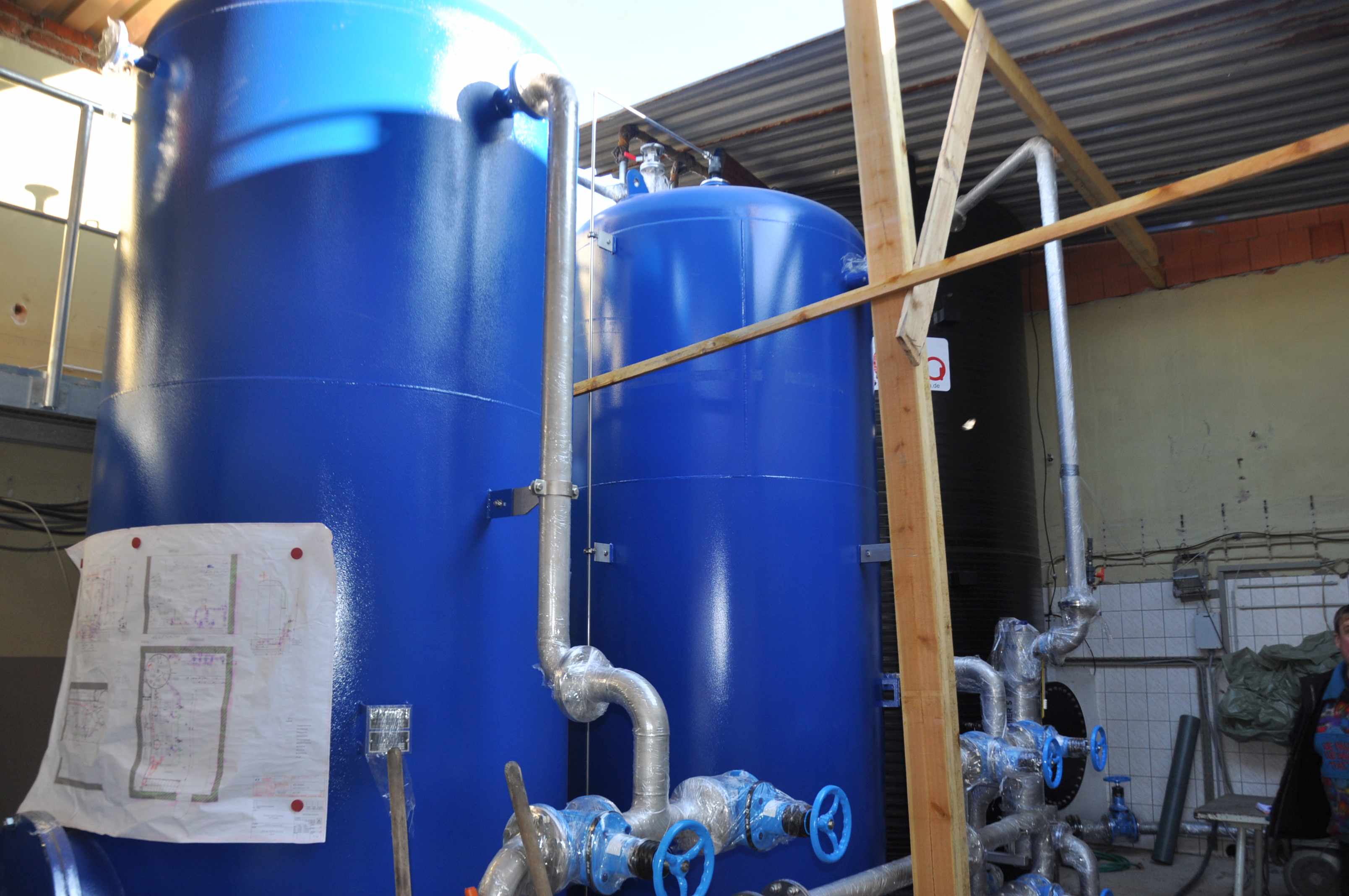 Ziel der Arbeiten war es, die mehr als vierzig Jahre alten Filterkessel und Rohrleitungen sowie den Reinwasserbehälter abzulösen und mit modernem Standard zu erneuern. Dass dies Zeit wurde, zeigte sich bereits an kleineren Leckagen der Anlagen.