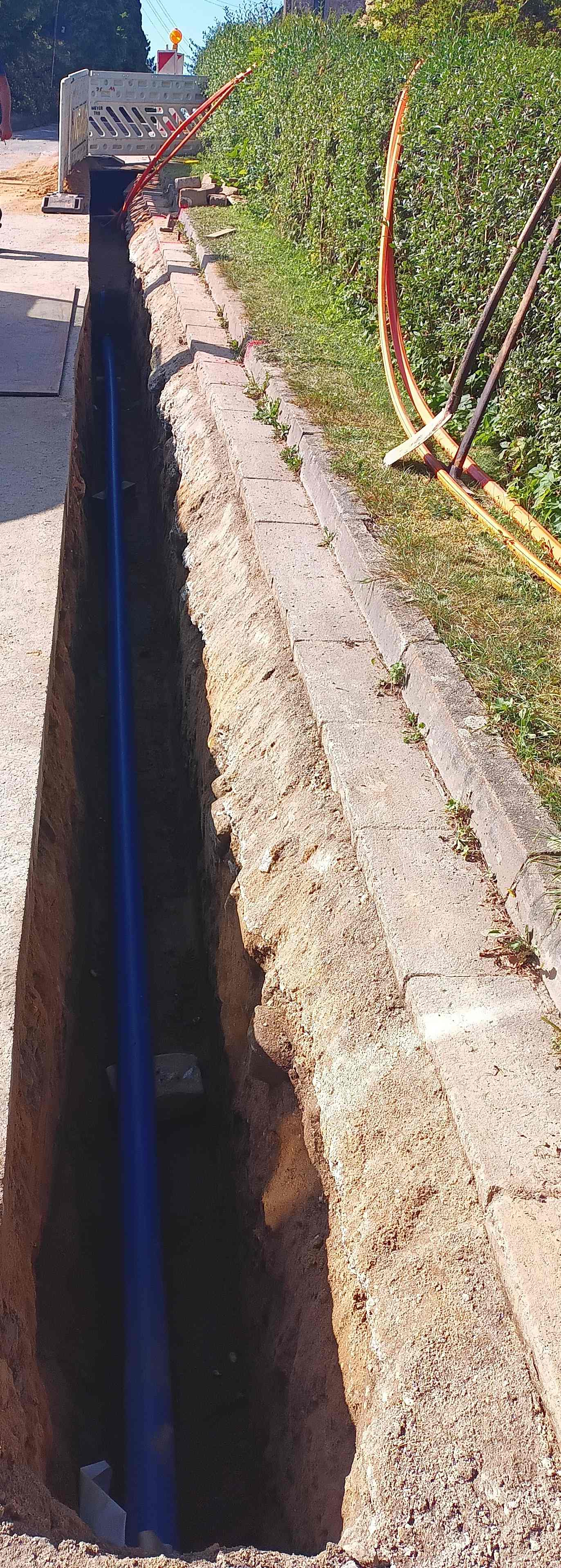 Von Mitte März bis Mitte April 2024 wurde auf einem Teilbereich in der Bahnhofstraße in Lohmen die Trinkwasserleitung erneuert. Gleichzeitig wurden 2 Grundstücke an das Netz der öffentlichen Wasserversorgung vorerschlossen.