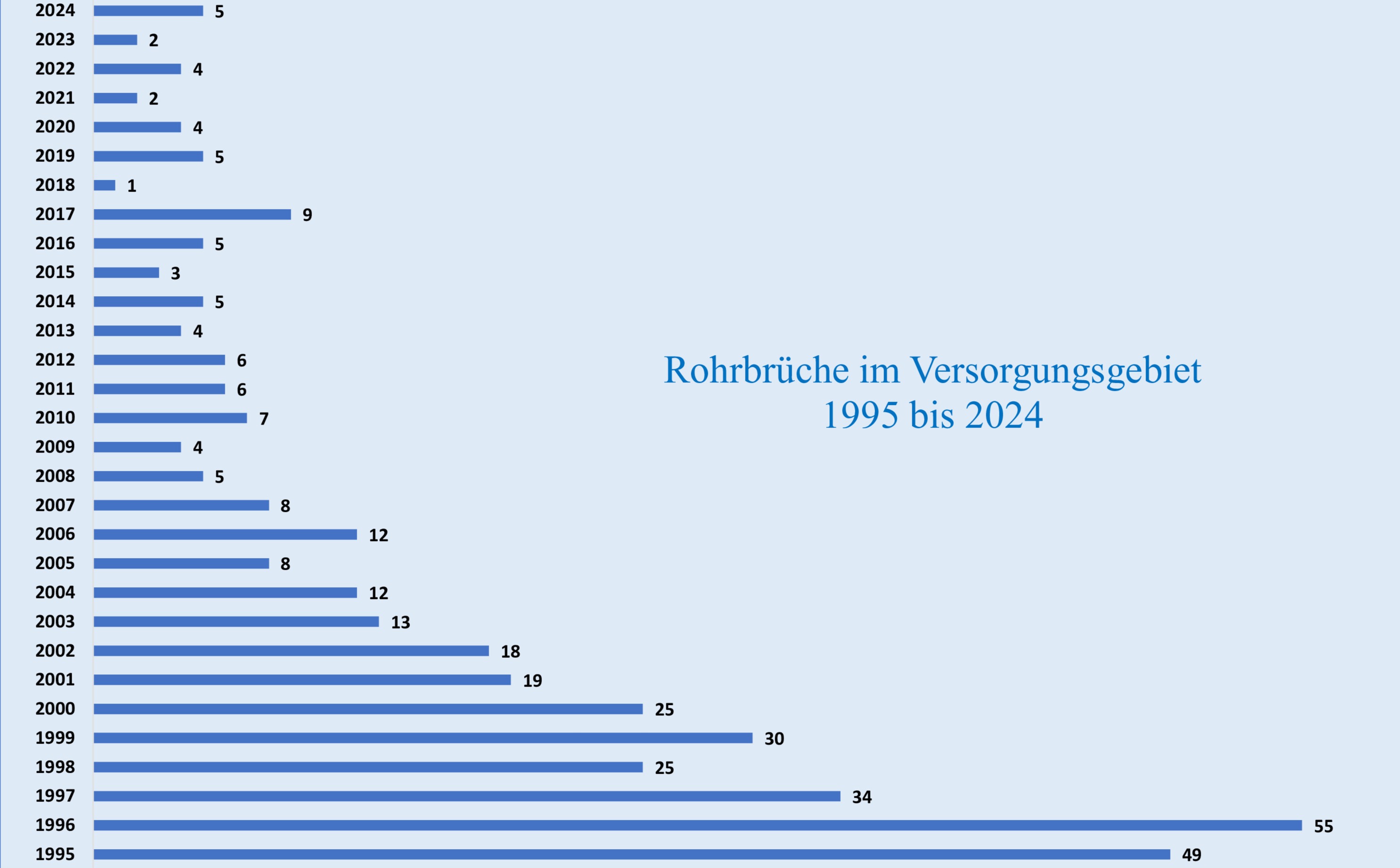 In den folgenden Abbildungen ist die Entwicklung der Wasserverluste im Verbandsgebiet seit 1995 dargestellt.