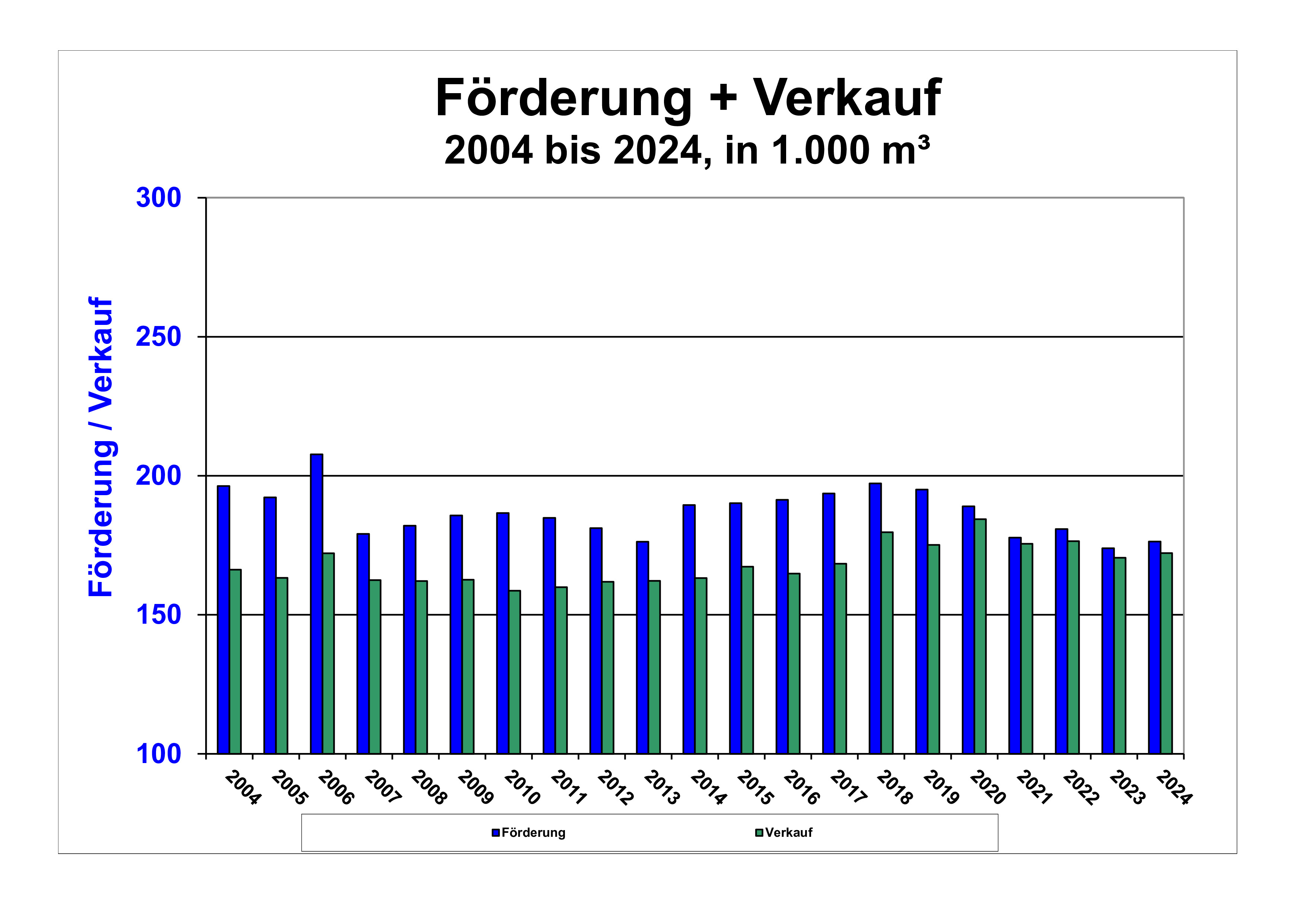 Im Jahr 2024 wurden hier insgesamt 179.690 m³ Rohwasser gefördert und aufbereitet. An die Anschlussnehmer im Versorgungsgebiet wurden 171.923 m³ Trinkwasser abgegeben.